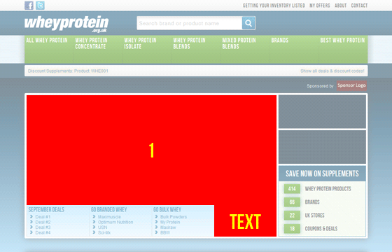 Aside from product listings there are several other ways you can promote your business through Wheyprotein.org.uk. Please contact us for current advertising availability and traffic data.